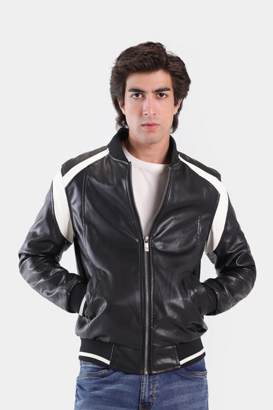 Faux Leather Jacket With Contrast Panel